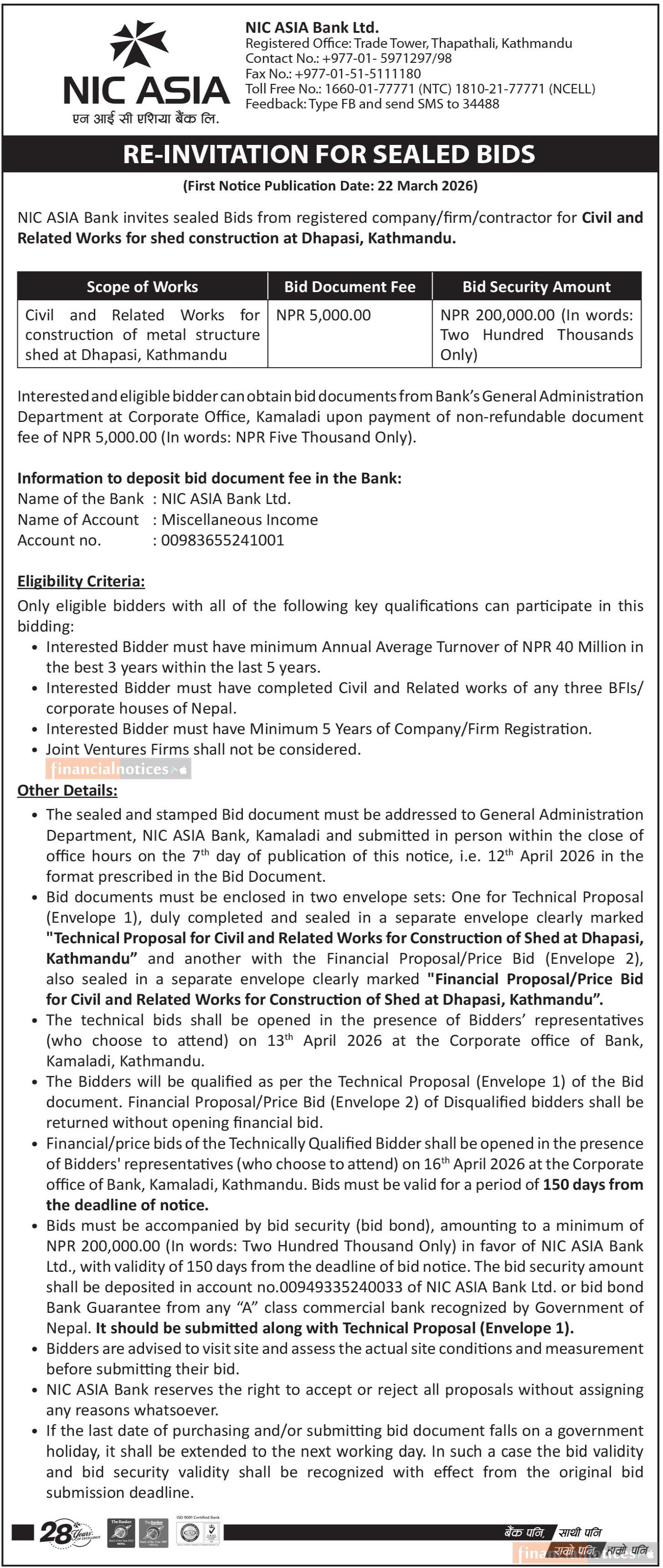 शिलबन्दी बोलपत्र आव्हान सम्बन्धी १५ दिने सूचना