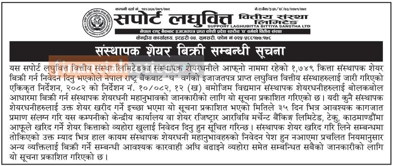 संस्थापक समुहको शेयर सर्वसाधारणमा परिवर्तन गर्ने सम्बन्धी सूचना