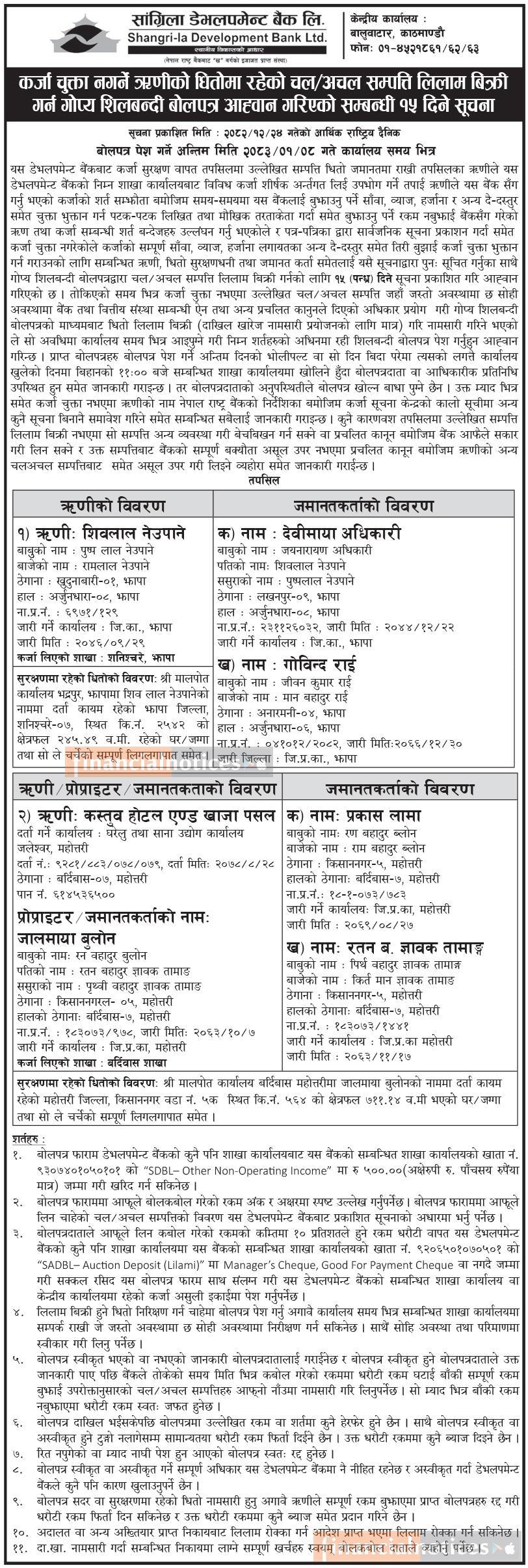 Published by Shangri-la Dev. Bank on 2082-12-24