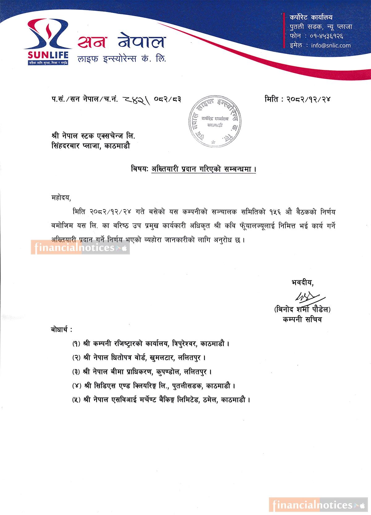 सन नेपाल लाइफ इन्स्योरेन्सको वरिष्ठ उपप्रमुख कार्यकारी अधिकृत फुयाललाई सीइओको जिम्मेवारी