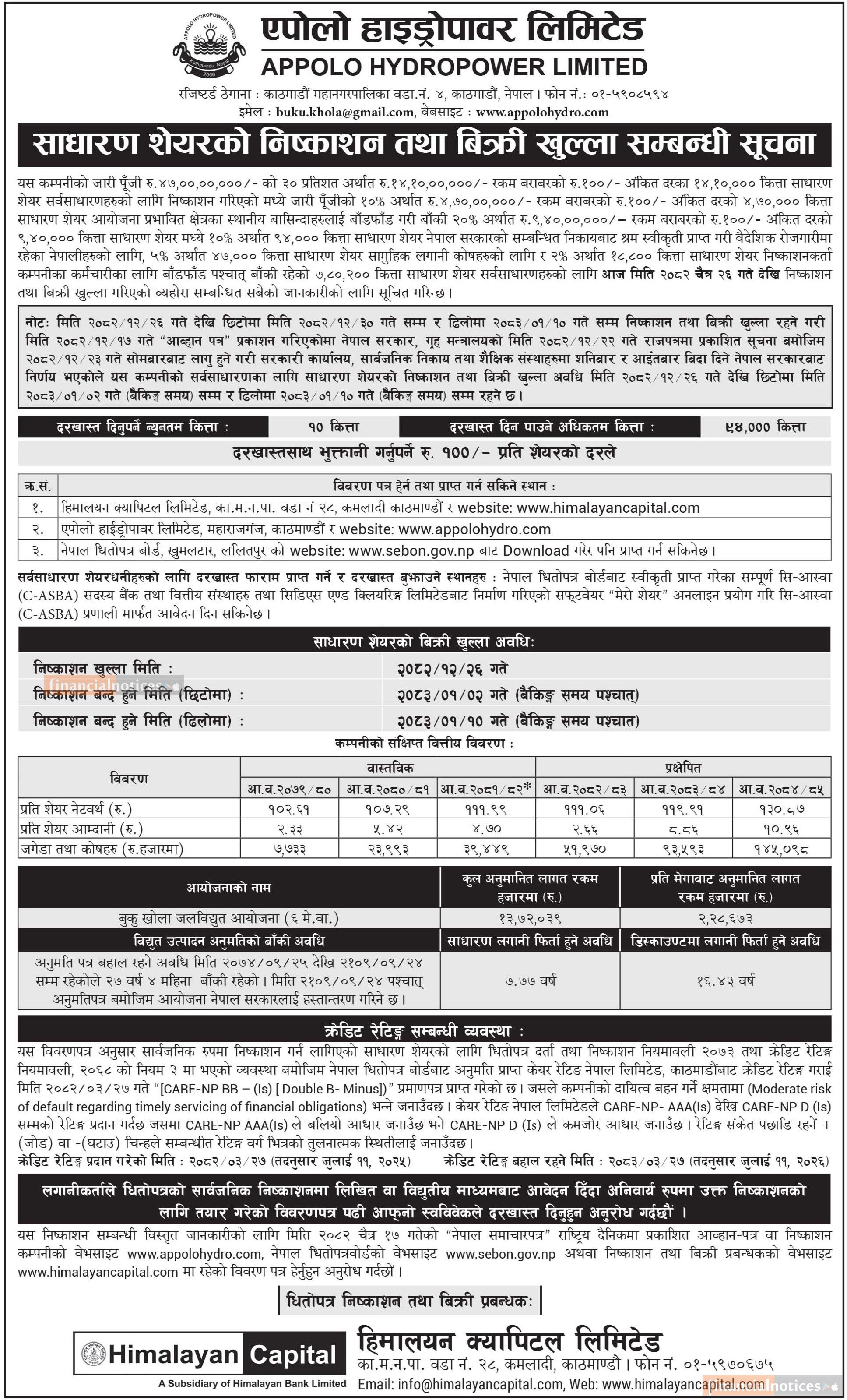 एपोलो हाइड्रोपावर आईपीओ सार्वजनिक: दोस्रो चरणमा सर्वसाधारणका लागि शेयर खुला