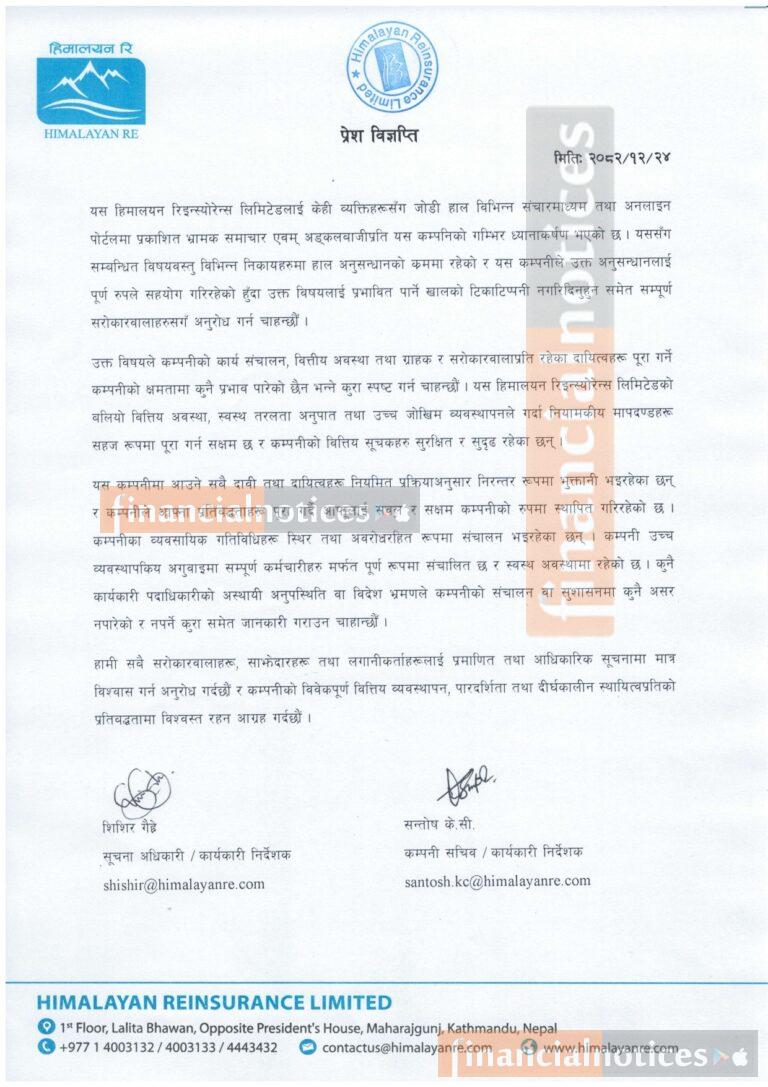 Published by Himalayan Re-insurance on 2082-12-26
