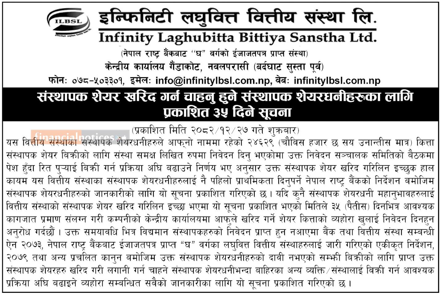 संस्थापक शेयर खरिद गर्न चाहानुहुने संस्थापक शेयरधनीहरुलाई जरुरी सूचना