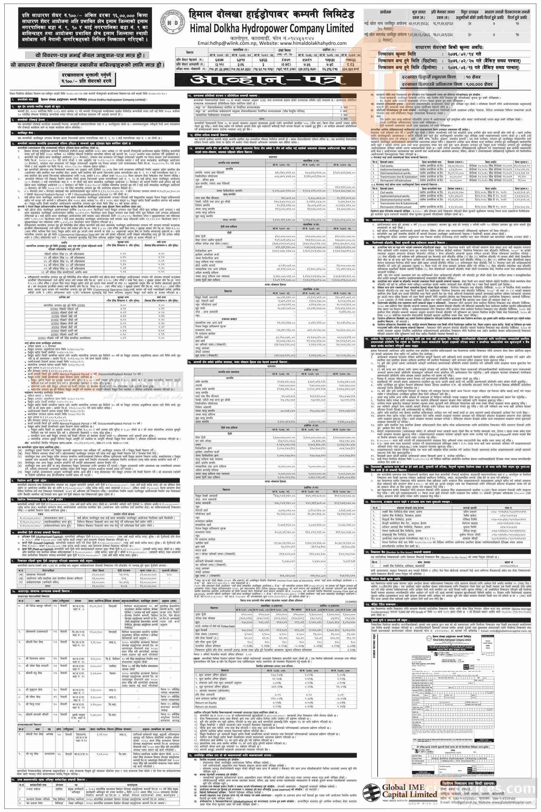 IPO निश्कासनको सूचना - Himal Dolkha Hydro