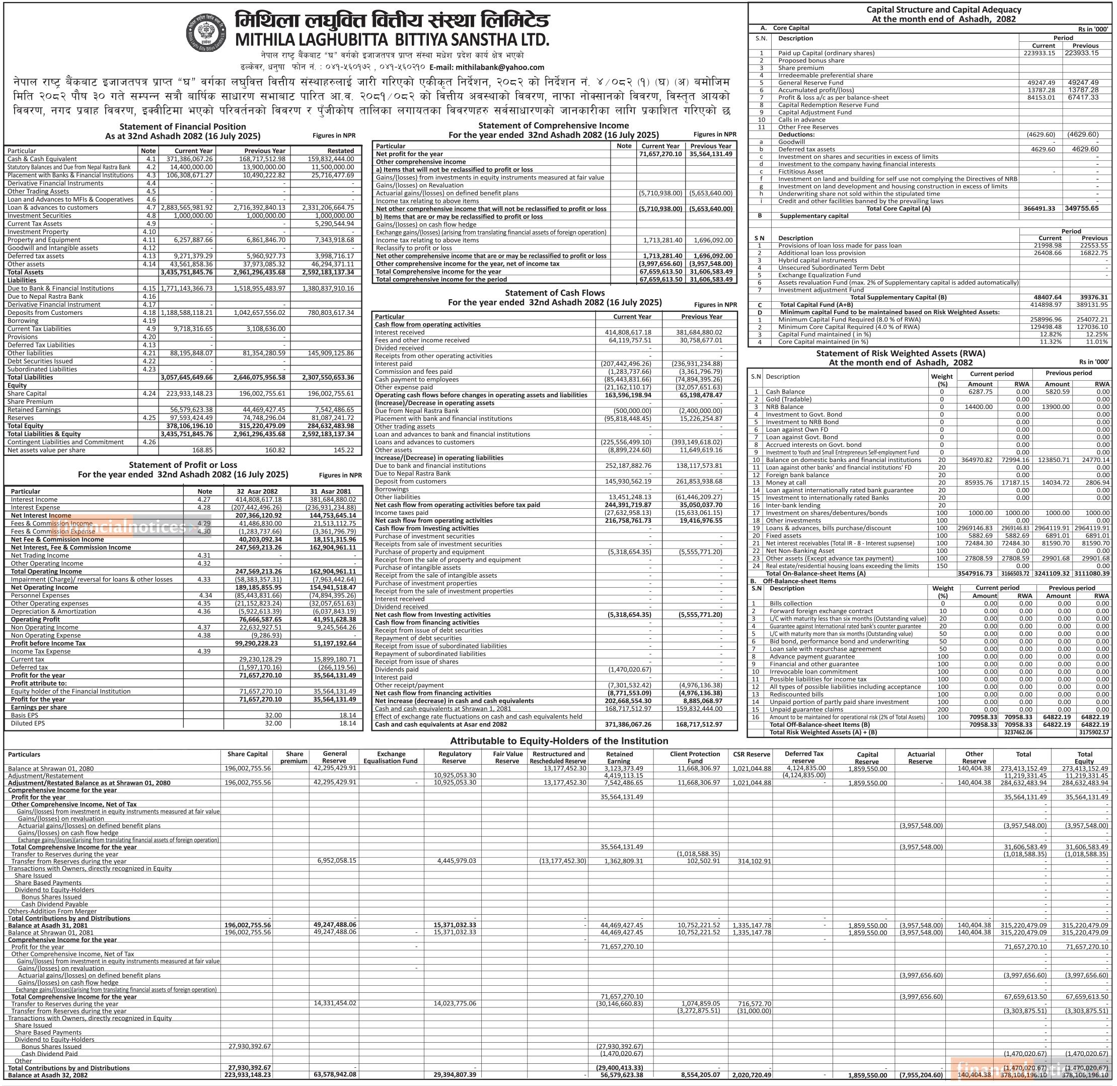 Mithila Laghubitta has published its annual financial statement of the fiscal year 2081/82