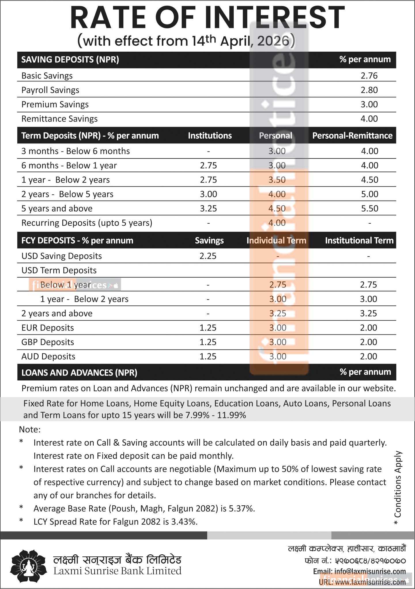 Laxmi Sunrise Bank Announces Updated Interest Rates for Baisakh 2083 -