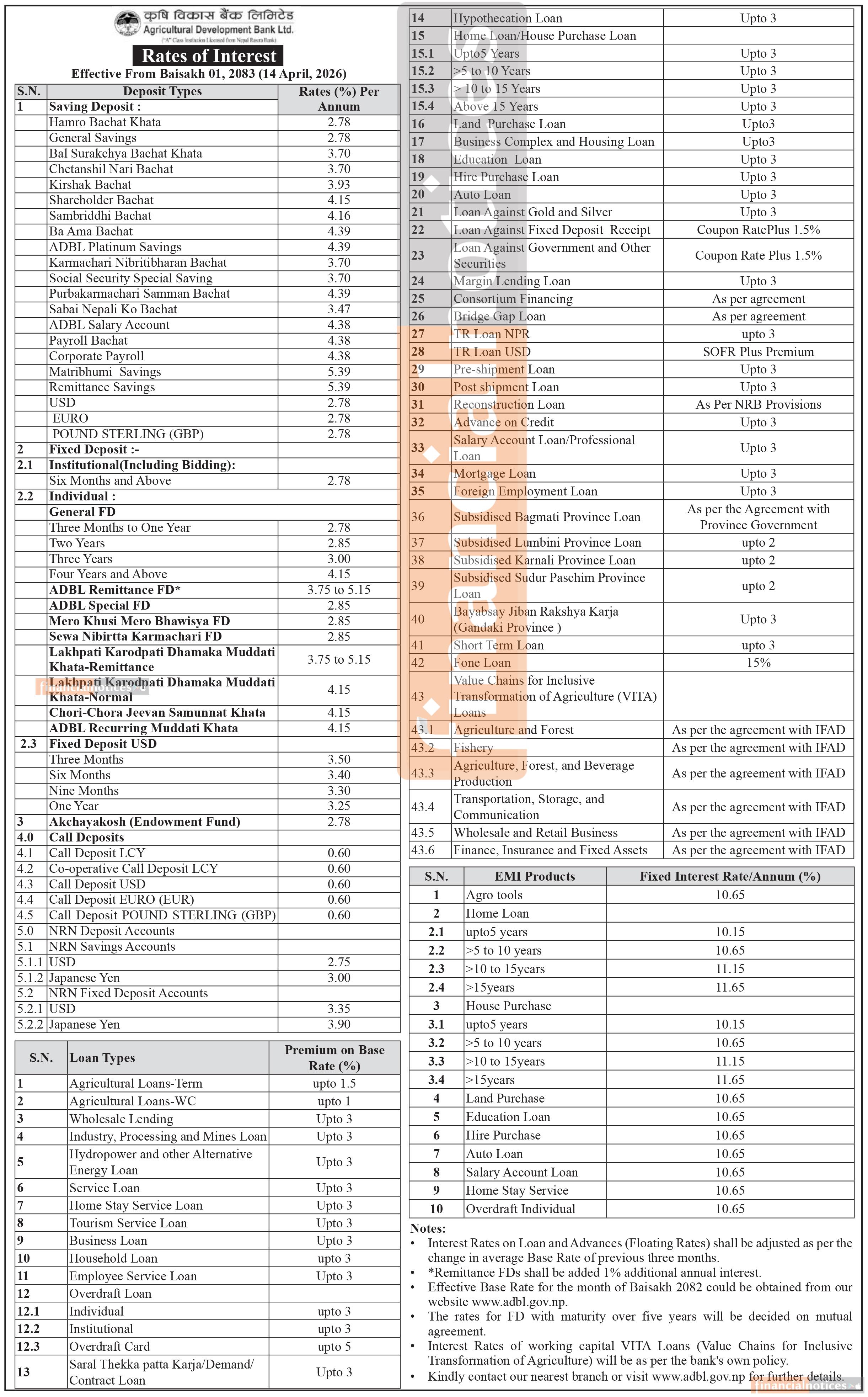 Agricultural Development Bank Updates Deposit and Loan Interest Rates Effective from Baisakh 2083 -