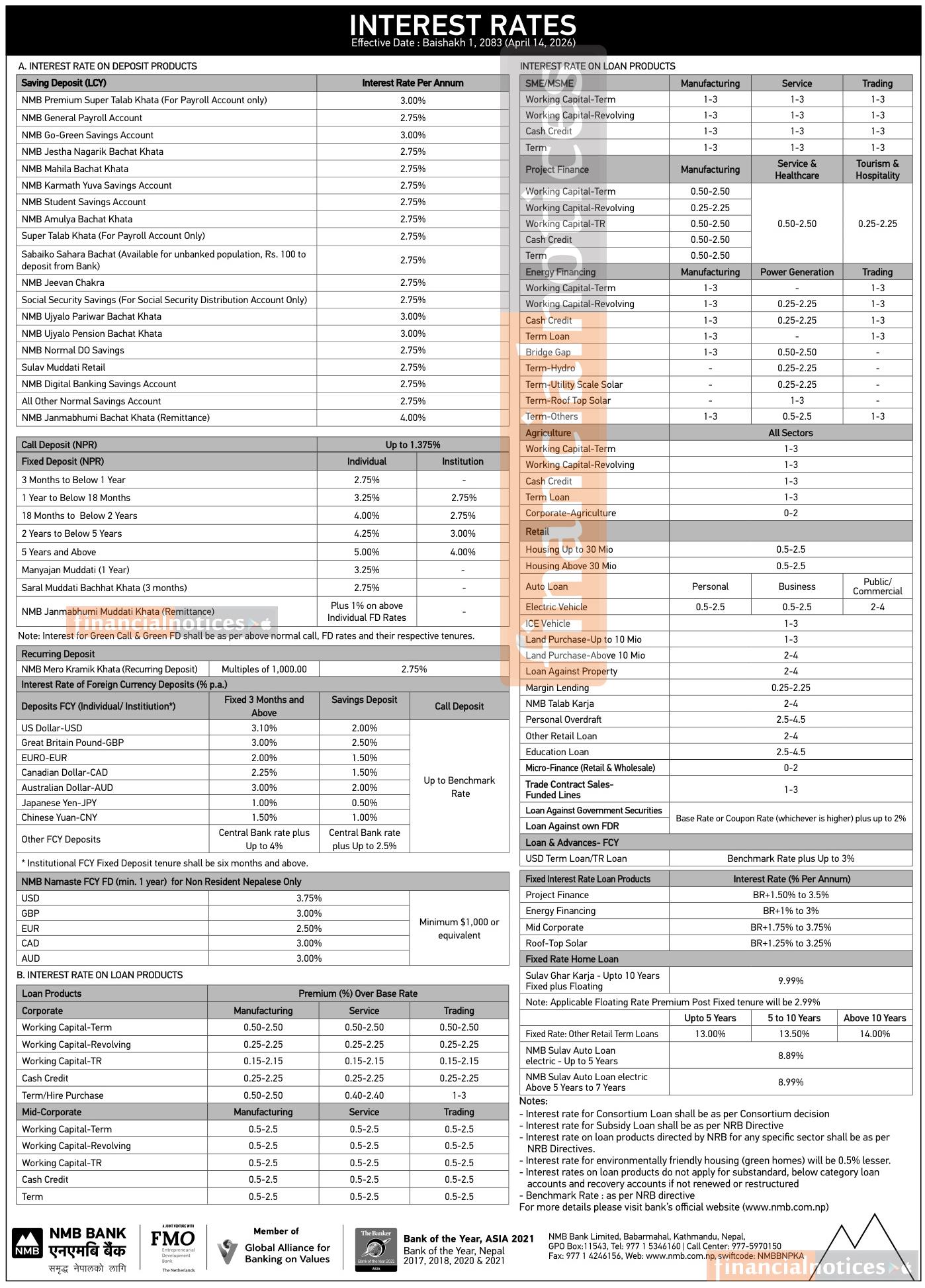 NMB Bank Publishes Revised Interest Rate Structure Effective from Baisakh 2083 -
