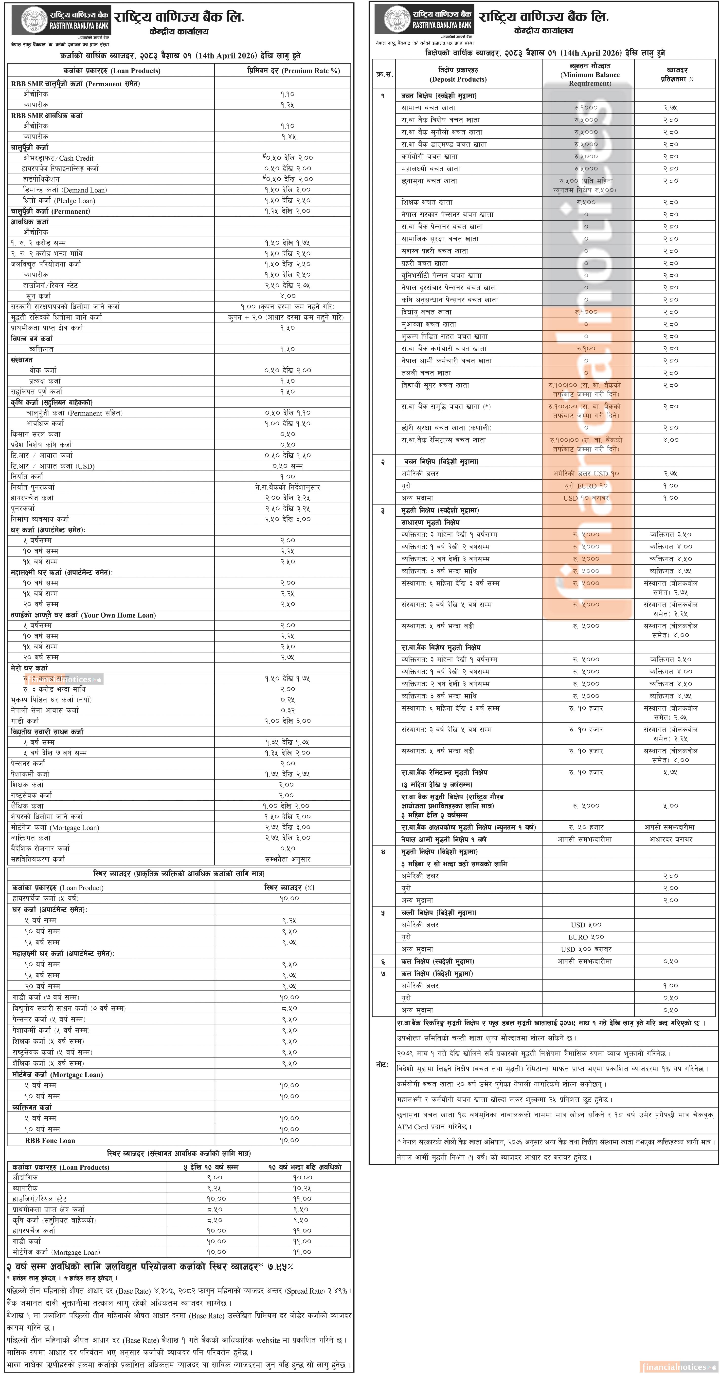 Rastriya Banijya Bank Unveils New Interest Rates Effective from Baisakh 1, 2083