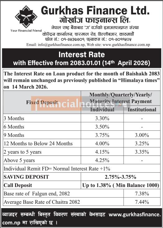 Gurkhas Finance Publishes New Interest Rates for Baisakh 2083