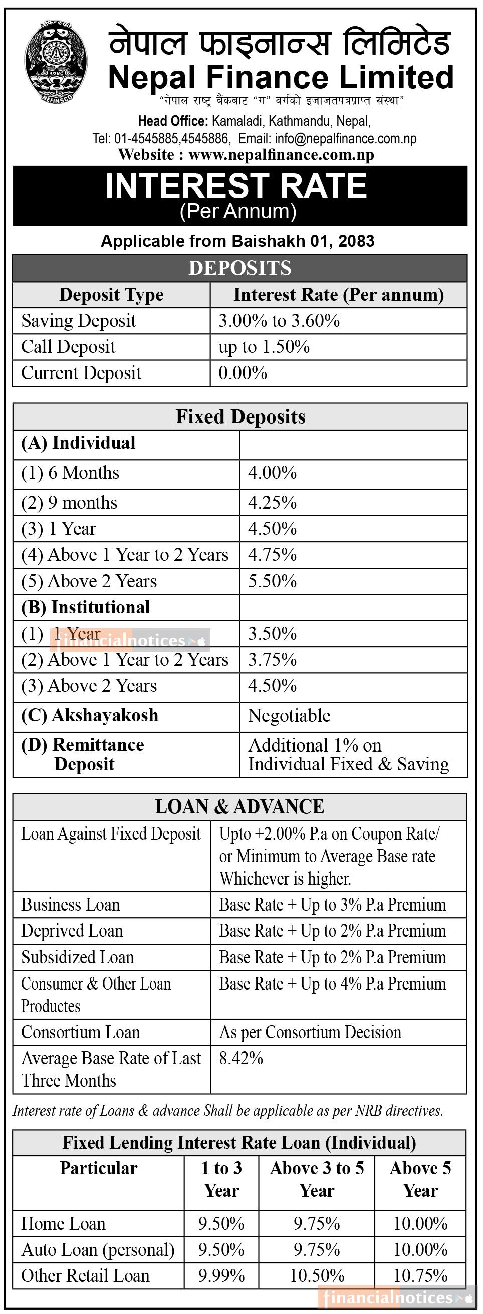 Nepal Finance Publishes Updated Interest Rates Applicable from Baisakh 1, 2083