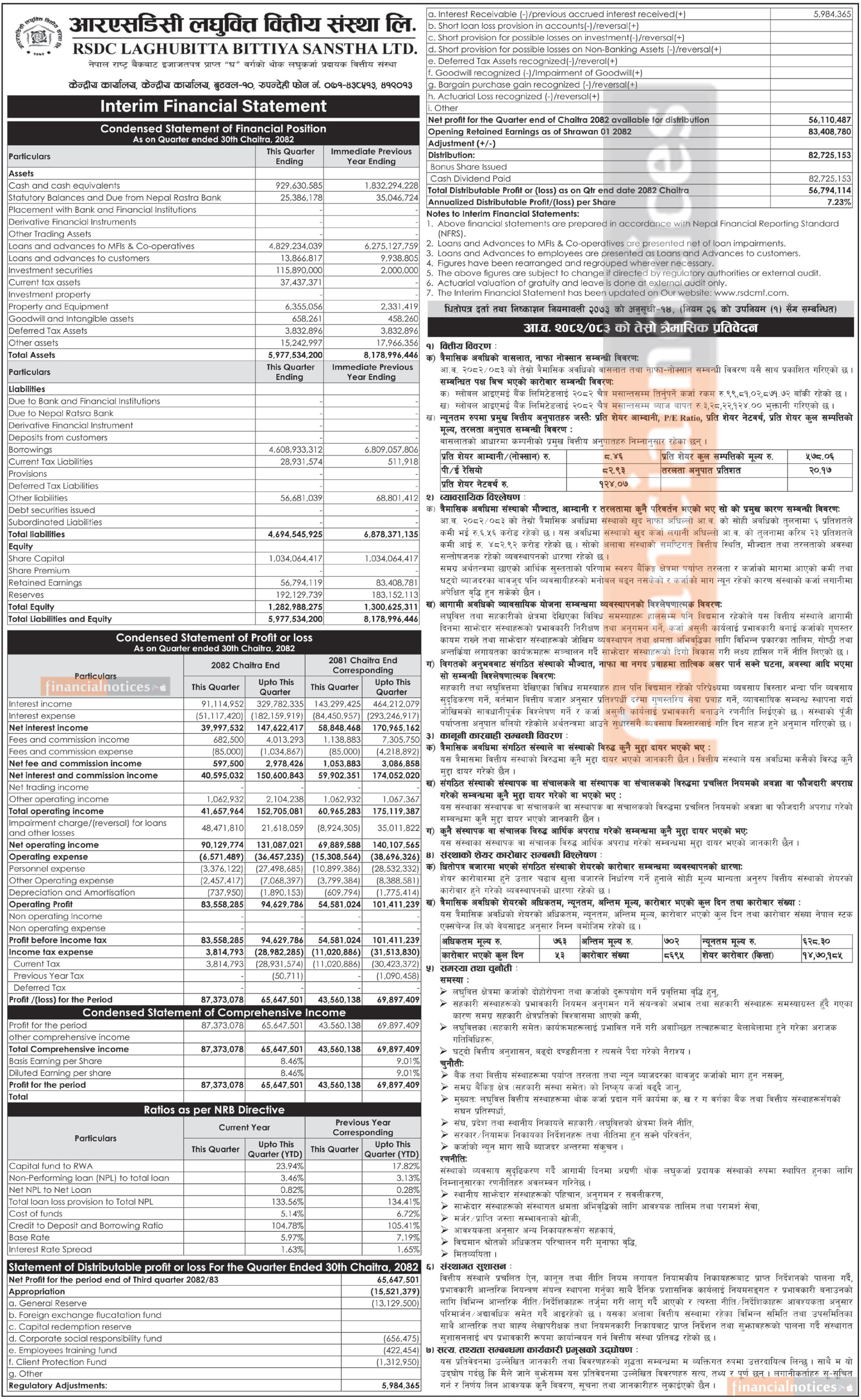 आरएसडिसी लघुवित्तको नाफा ६.०८% घट्यो, खुद नाफा ६ करोड ५६ लाखमा सीमित - Q3 Report