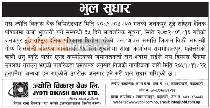 कर्जा चुक्ता भुक्तानीको लागि धनजमानिकर्ताहरुको नाममा प्रकाशित ९० दिने सूचना