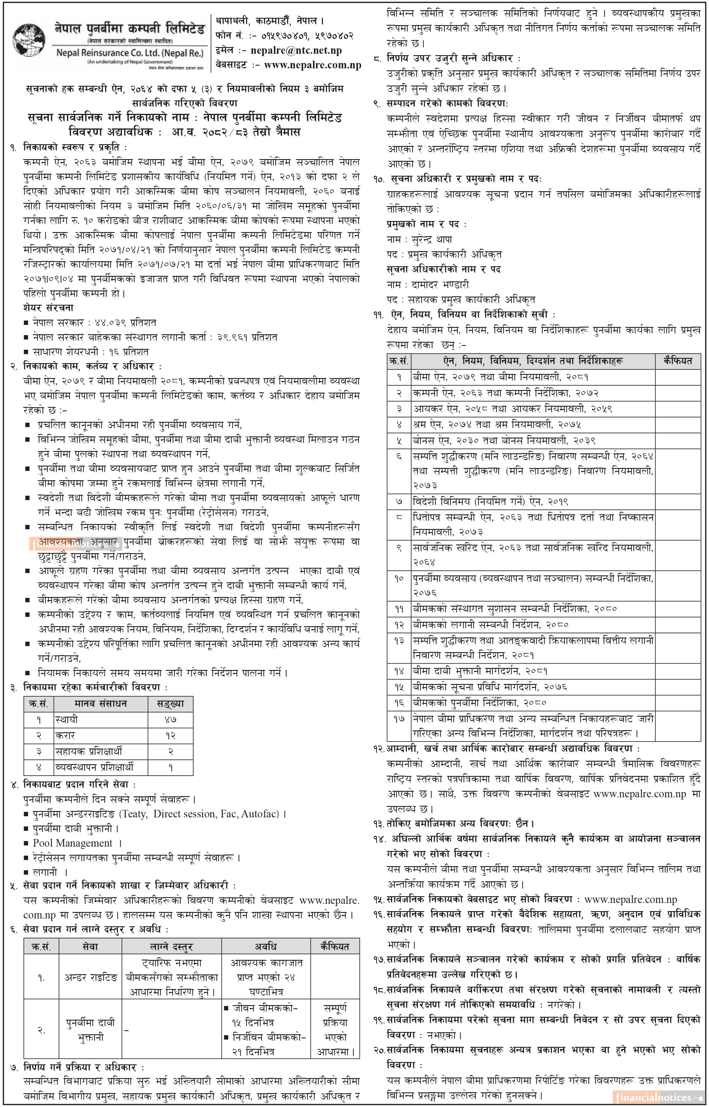 सूचनाको हक ऐन बमोजिम नेपाल पुनर्बीमा कम्पनीको त्रैमासिक विवरण सार्वजनिक सम्बन्धी सूचना