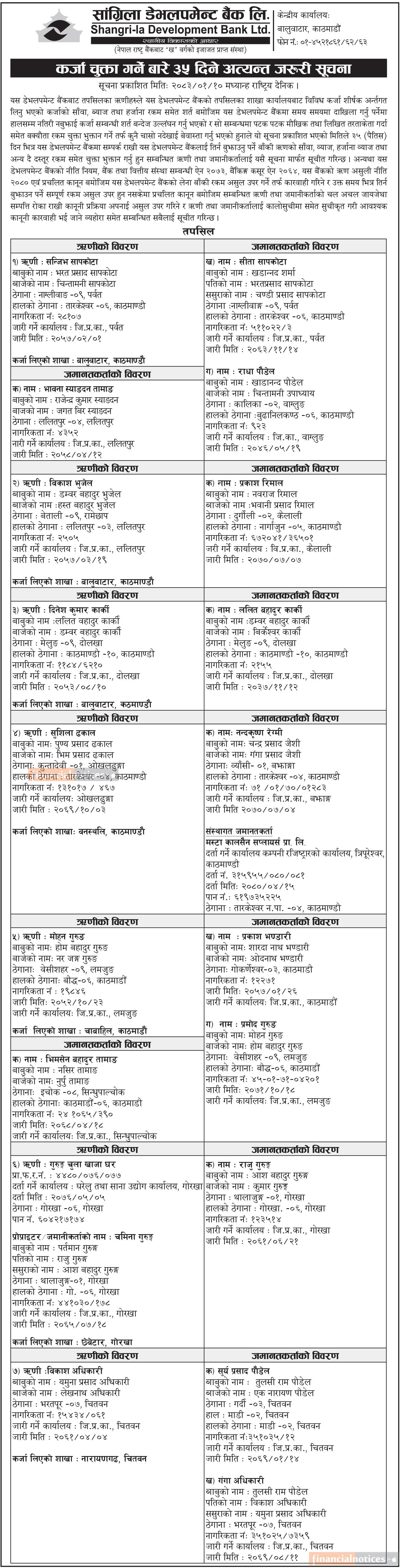 कर्जा चुक्ता भुक्तानी गर्ने बारे ३५ दिने सूचना