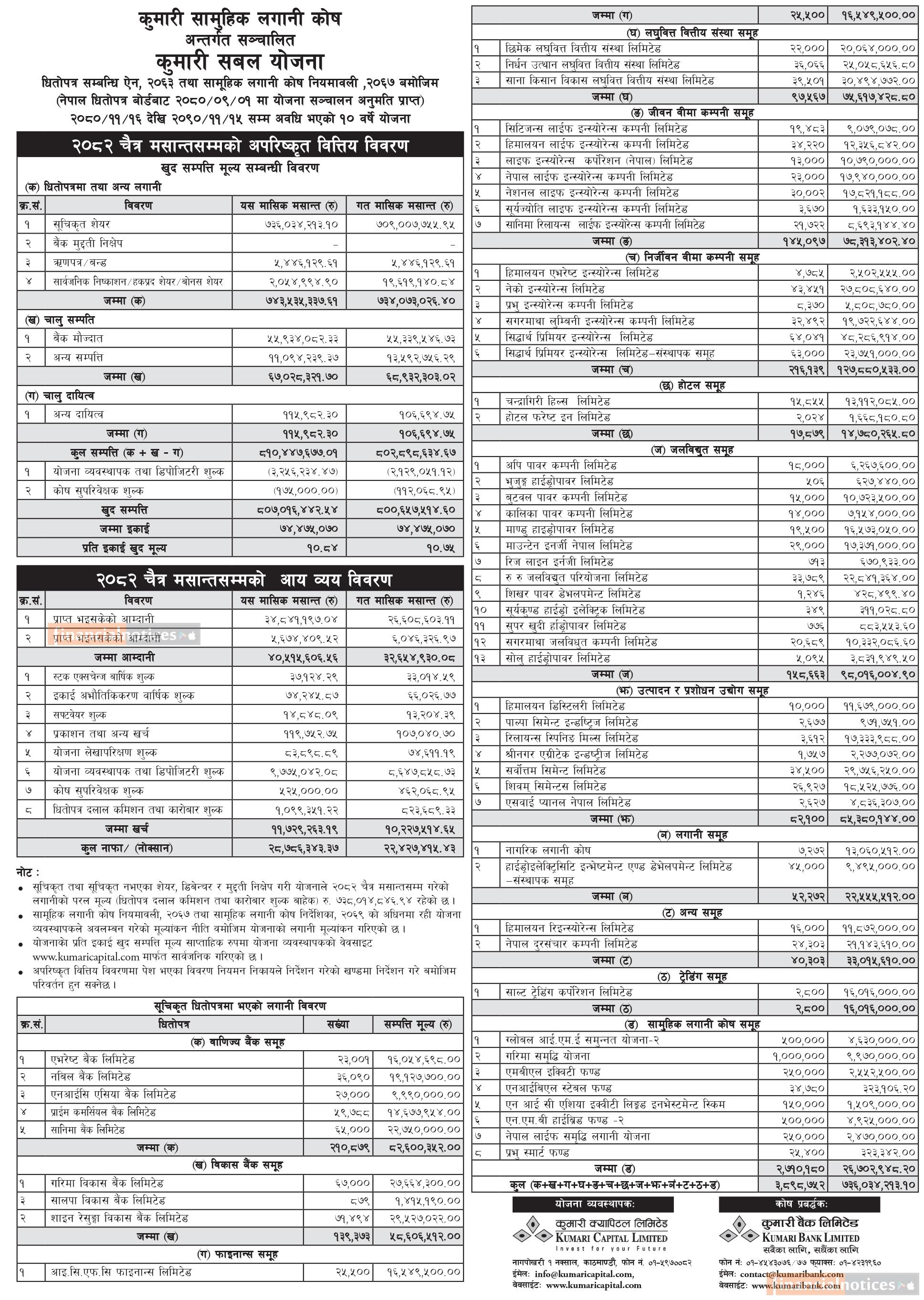 Kumari Capital has published “Kumari Dhanabriddhi Yojana” Net Asset Value till Chaitra, 2082