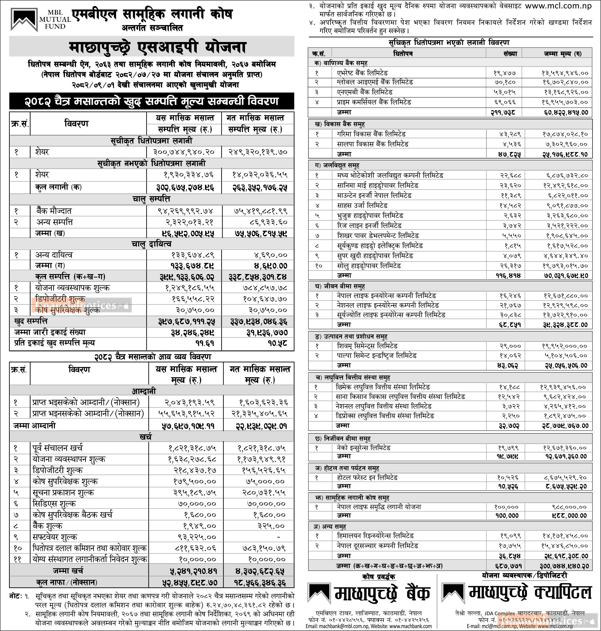 Machhapuchchhre Capital has published “Machhapuchchhre SIP Yojana” NAV till Chaitra, 2082
