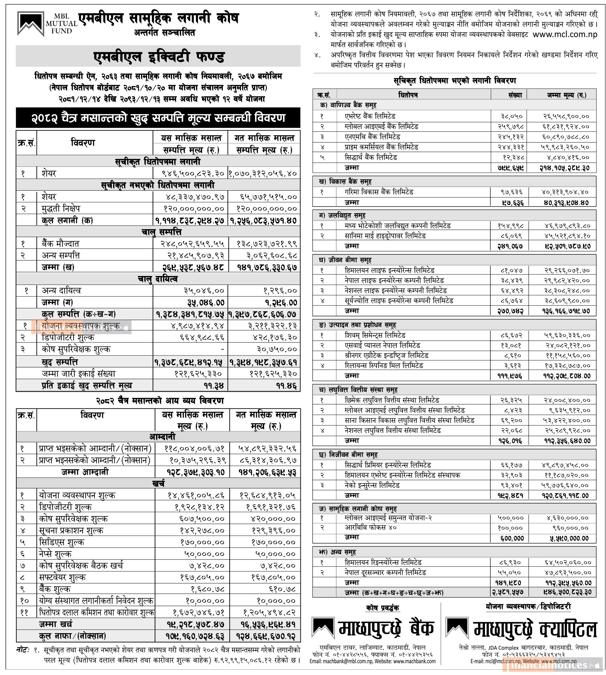 Machhapuchchhre Capital has published “MBL Equity Fund” Net Asset Value till Chaitra, 2082