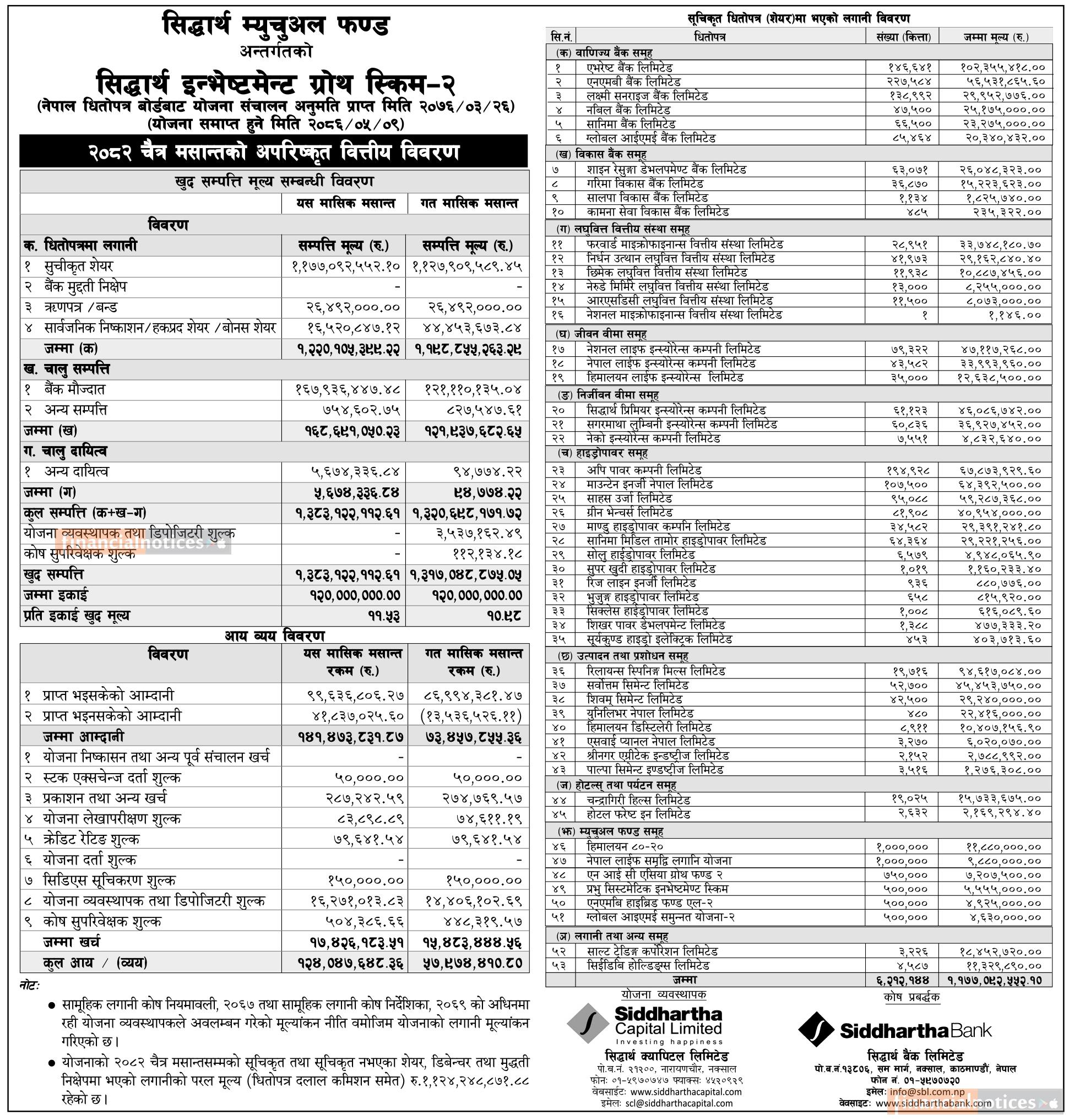 Siddhartha Capital has published “Siddhartha Investment Growth Scheme - 2” NAV till Chaitra, 2082