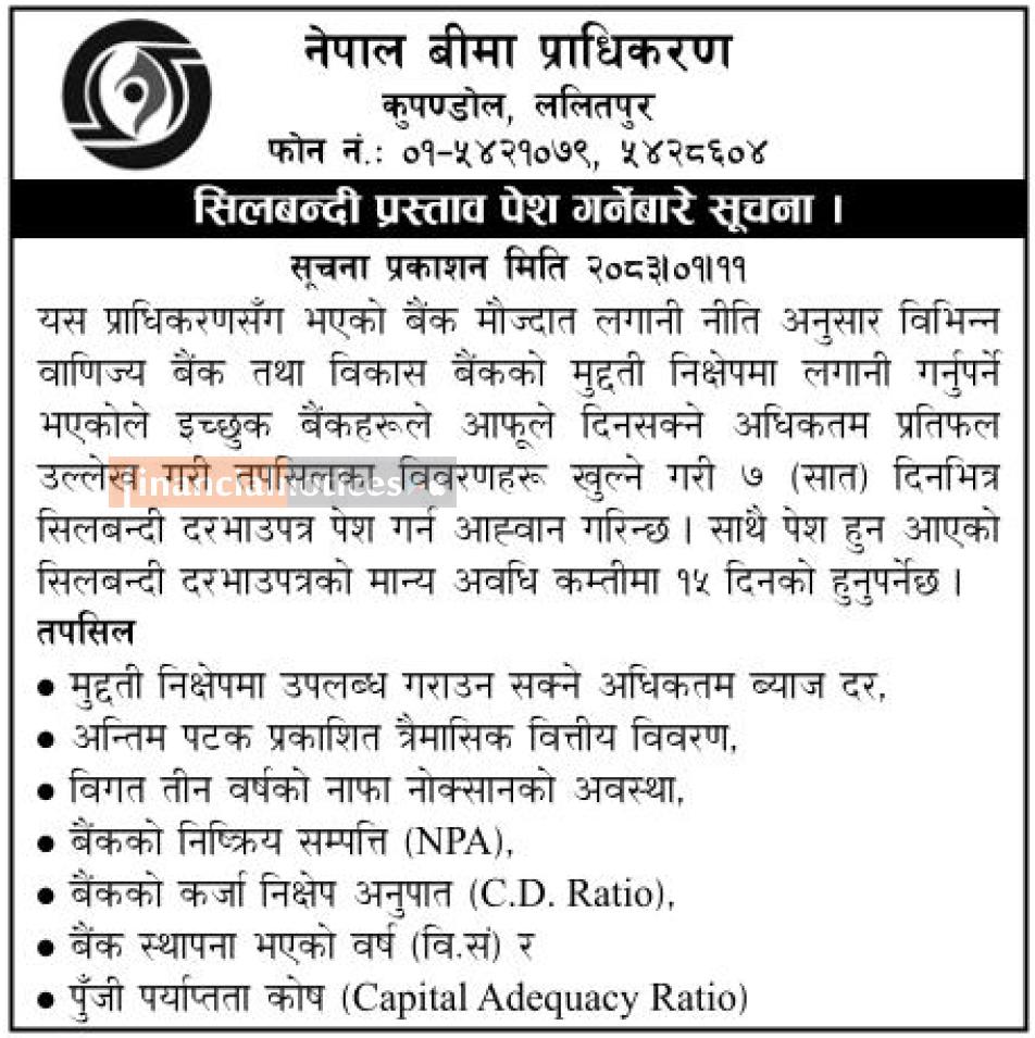 शिलबन्दी प्रस्ताव पेश गर्ने सम्बन्धी सूचना