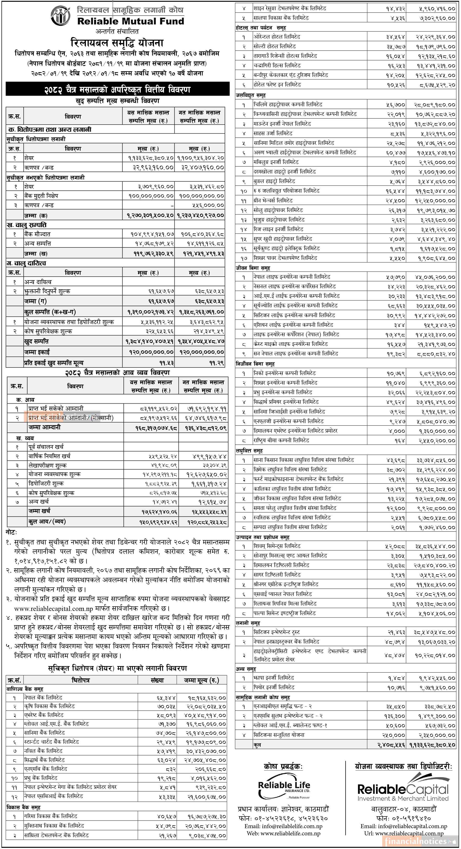 Reliable Capital has published "Reliable Samriddhi Yojana"NAV till Chaitra, 2082