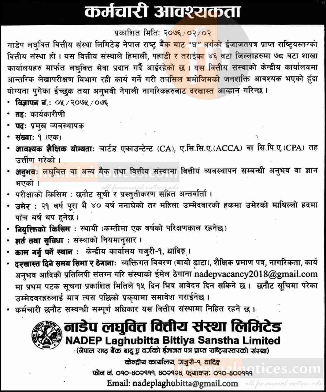NADEP लघुवित्तमा कर्मचारी आवश्यकता