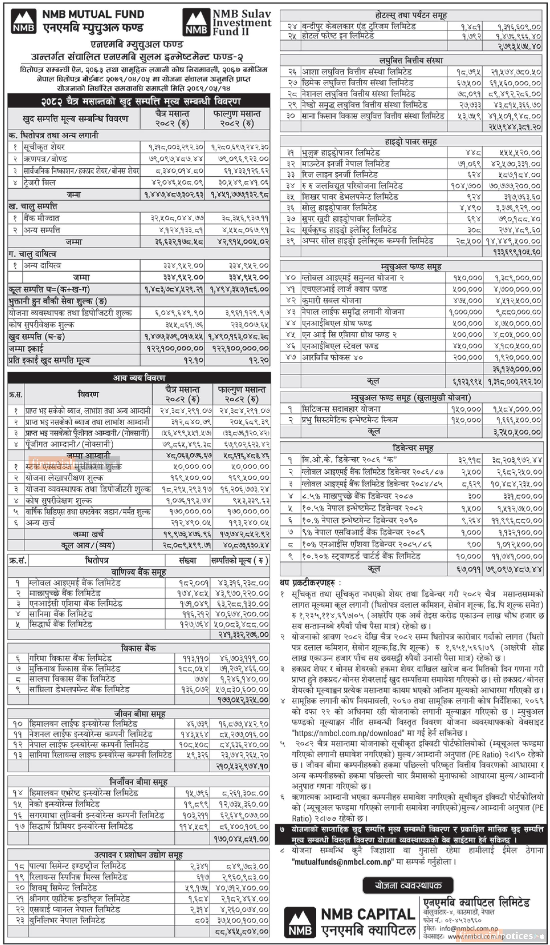 NMB Capital has published "NMB Sulav Investment Fund - II" Net Assets Value till Chaitra, 2082