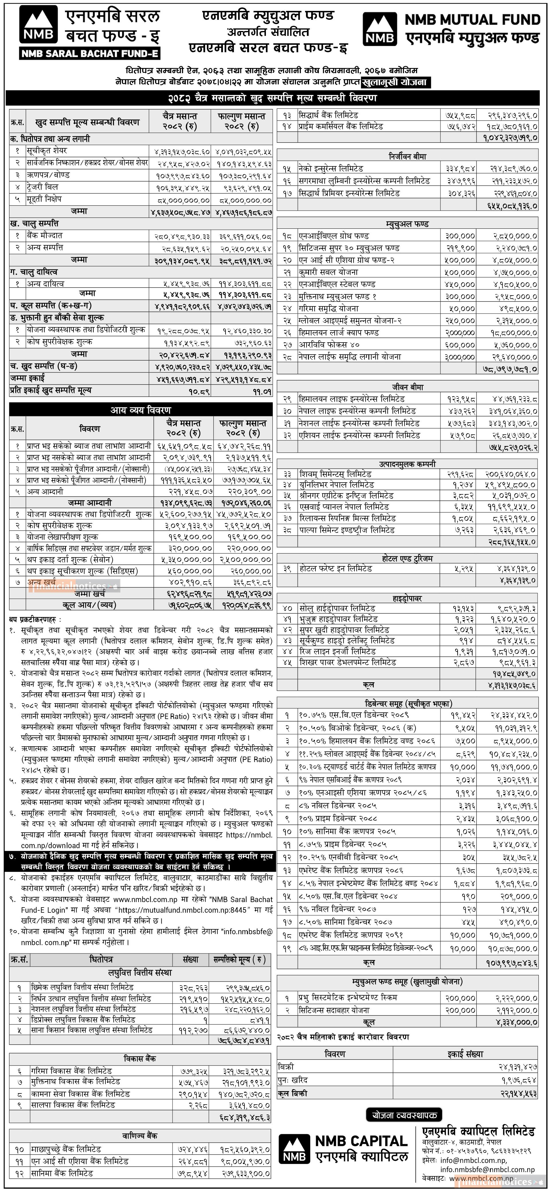 NMB Capital has published "NMB Saral Bachat Fund - E" Net Assets Value till Chaitra, 2082