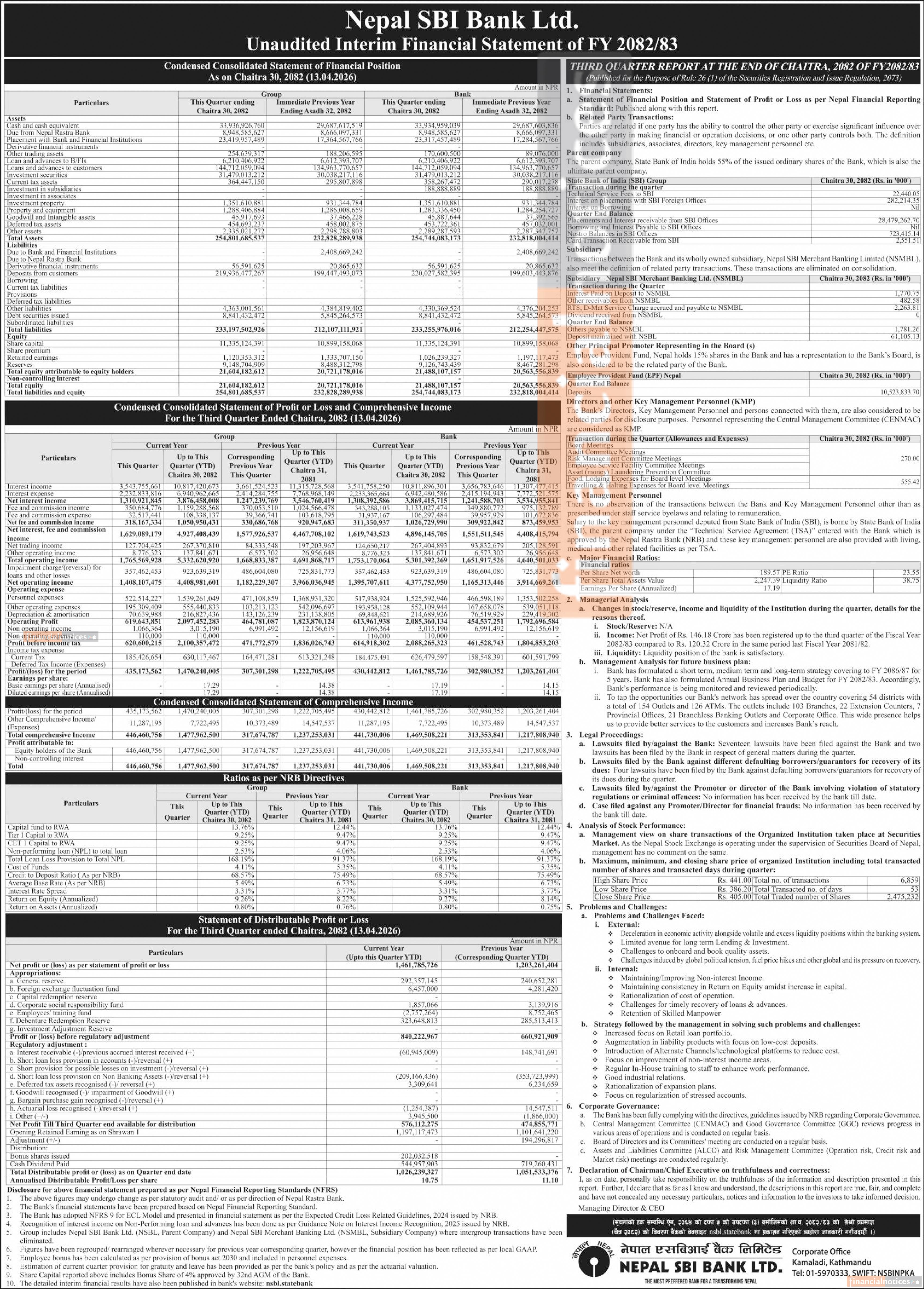 Nepal SBI Bank Earns Rs 1.46 Billion in Q3, Releases FY 2082/83 Financial Snapshot -