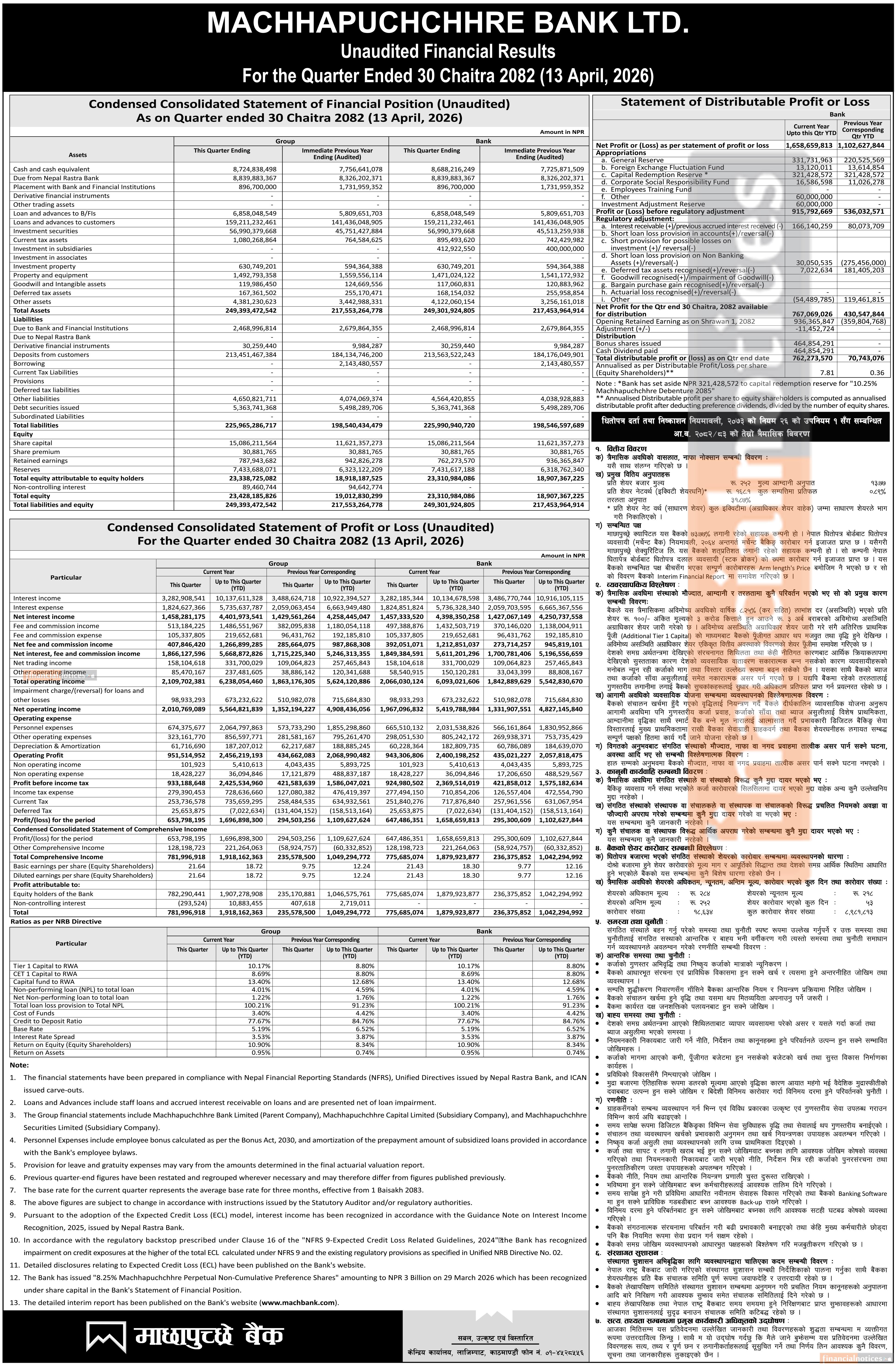 Machhapuchchhre Bank posted a Q3 net profit of Rs 1.65 billion for the current fiscal year 2082/83