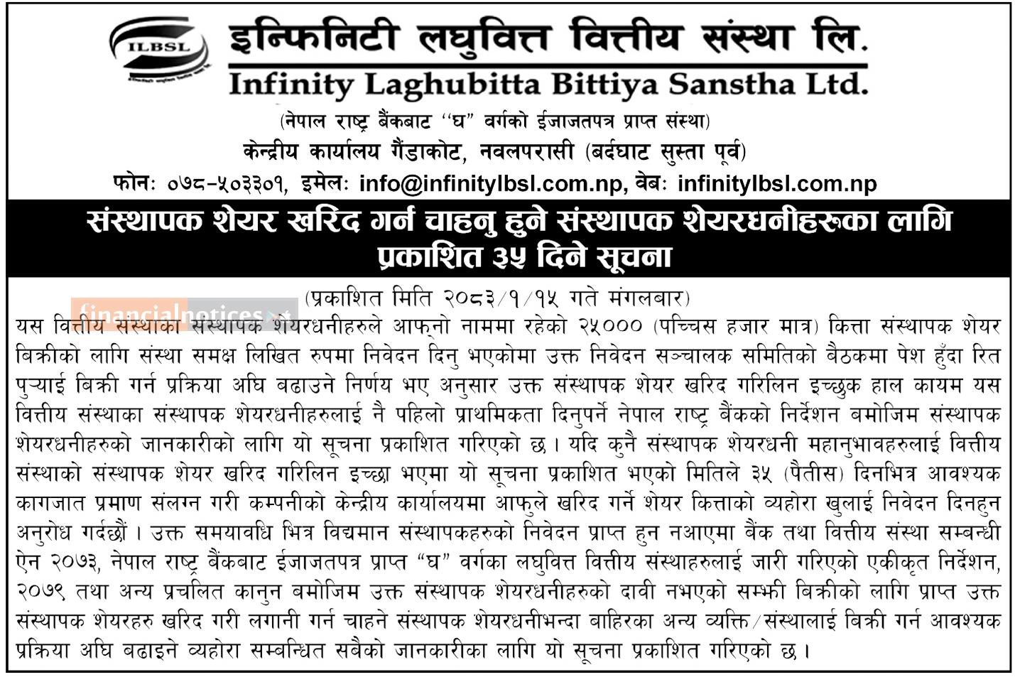 संस्थापक शेयर खरिद गर्न चाहानुहुने संस्थापक शेयरधनीहरुलाई ३५ दिने जरुरी सूचना
