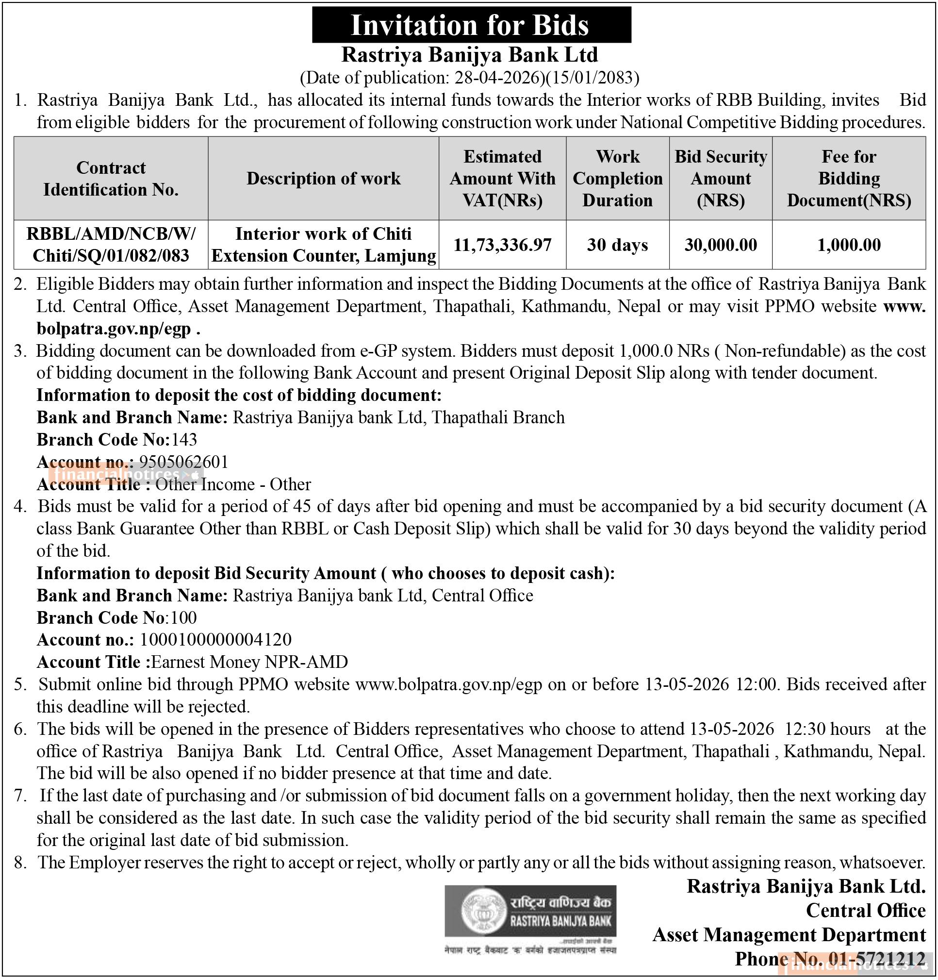 बैंकको विभिन्न शाखा कार्यालयमा धितो सुरक्षणमा रहेको सम्पत्ति लिलाम बिक्रीको सूचना