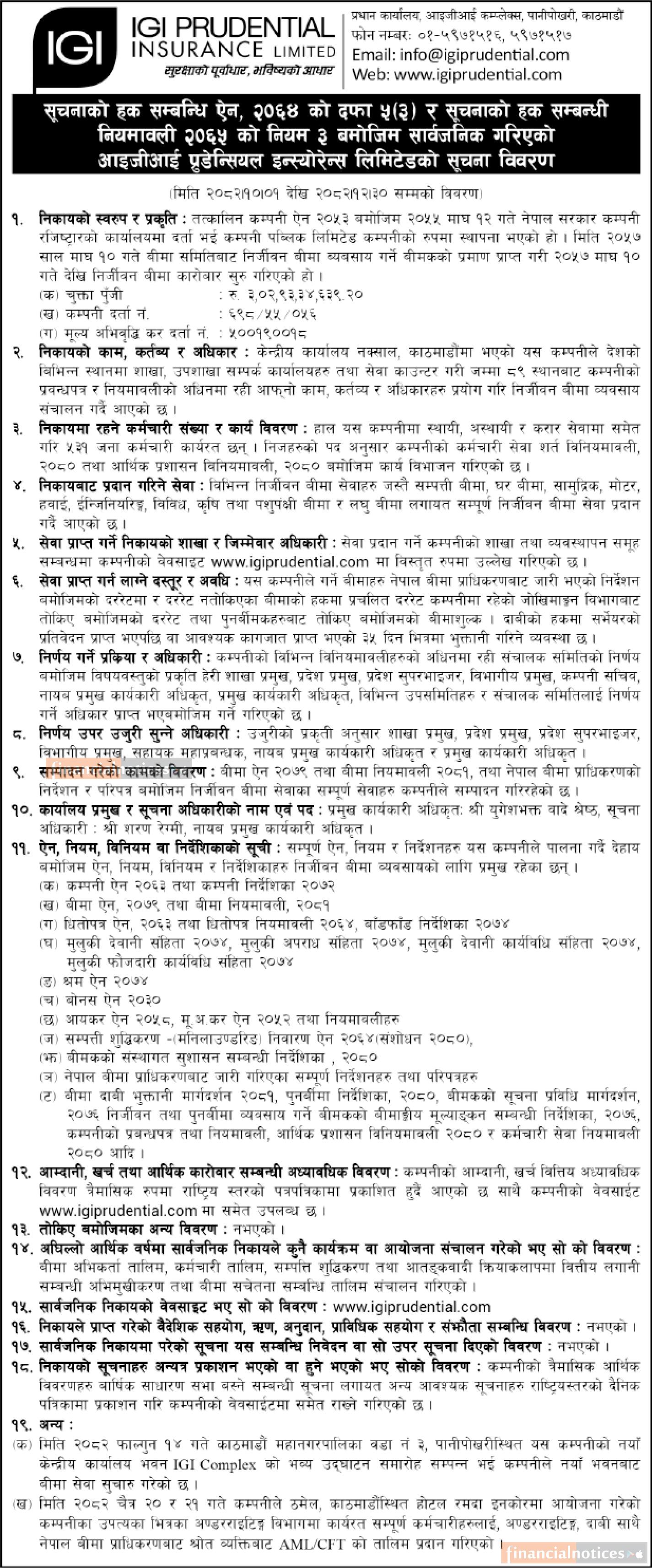 आइजीआई प्रुडेन्सियल इन्सुरेन्सको सूचनाको हक सम्बन्धी सूचना