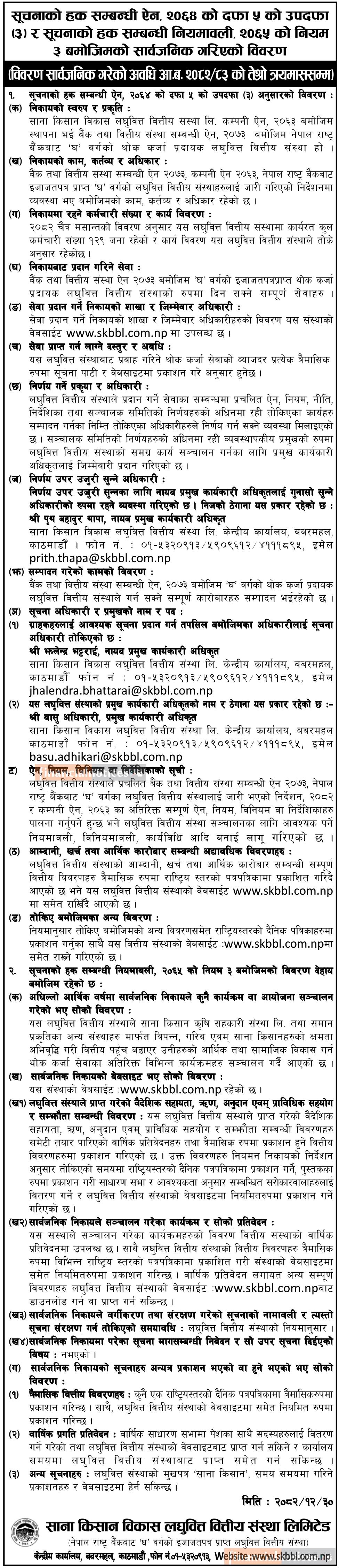 साना किसान विकास लघुवित्तको सूचनाको हक सम्बन्धी सूचना