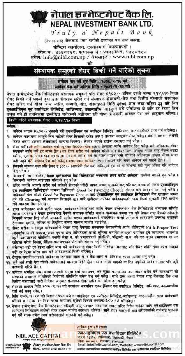 Promoter Share विक्री गर्ने सम्बन्धी सूचना