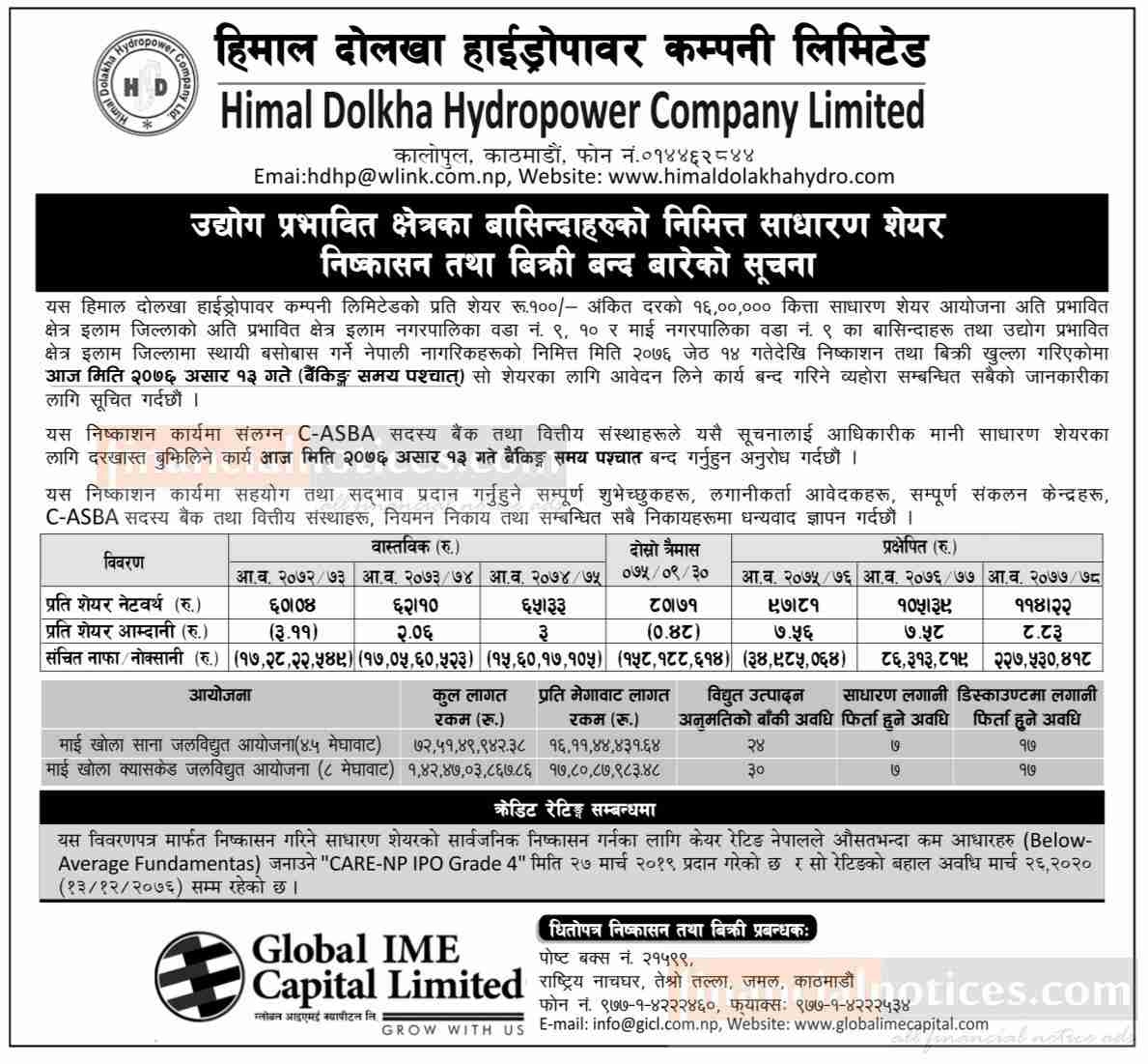 IPO विक्रि बन्दबारे सूचना