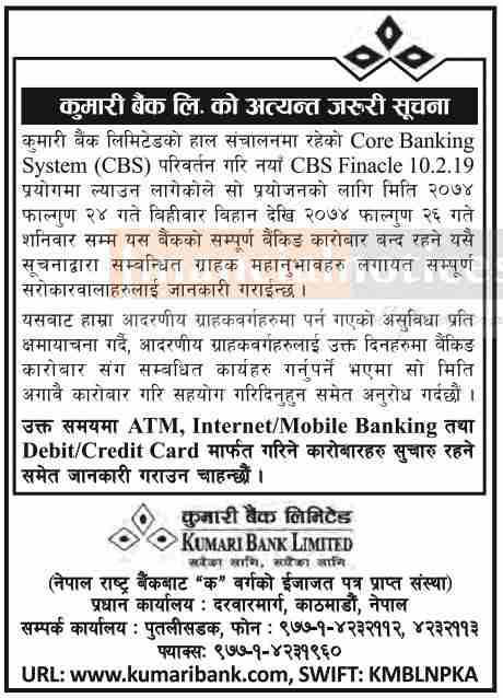 Published by Kumari Bank Ltd (KBL) Kantipur Newspaper on 2074-11-23