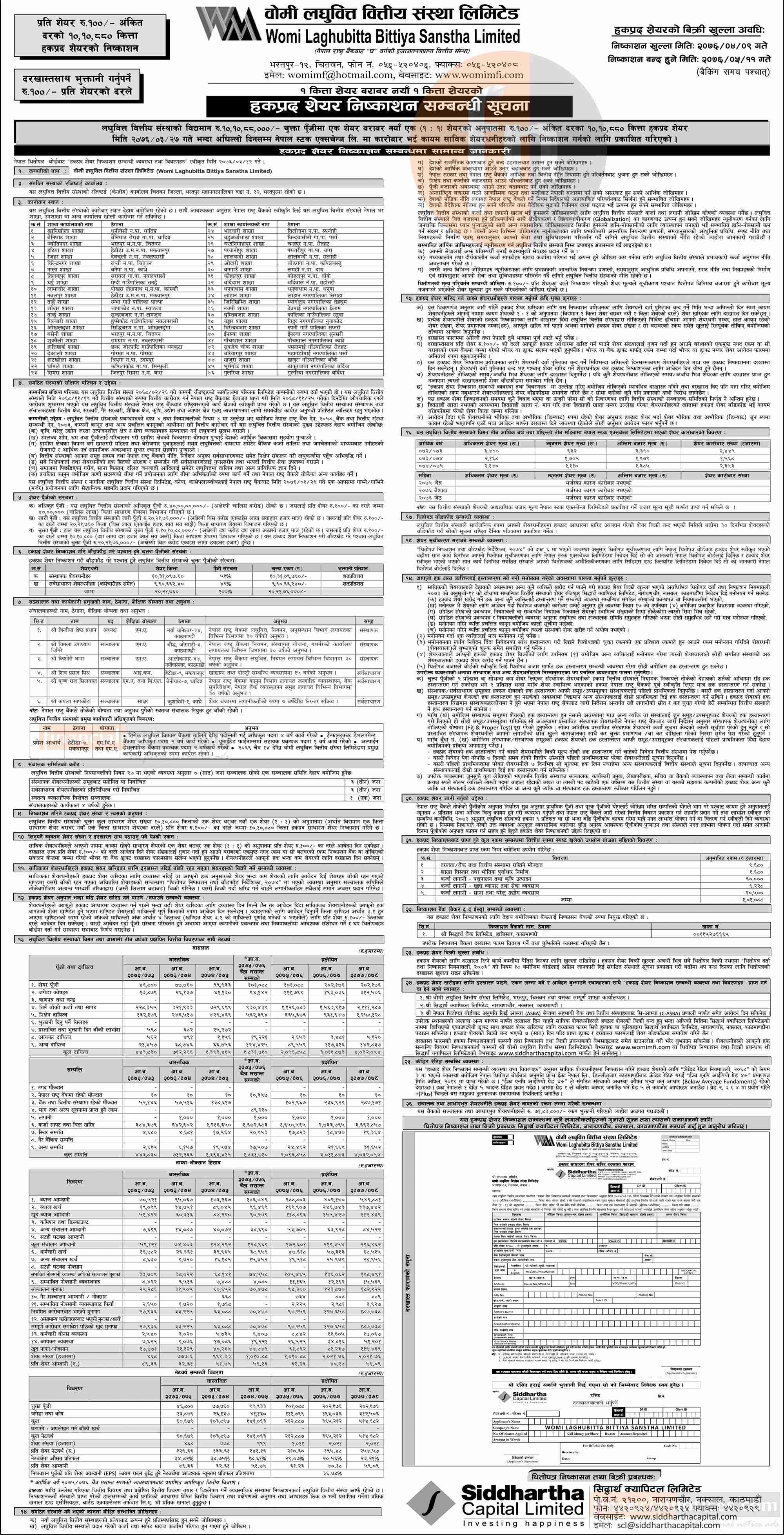हकप्रद सेयर निष्काशन सम्बन्धी सूचना