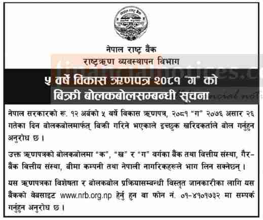 ५ वर्षे विकास ऋणपत्र बोलकबोलसम्बन्धी सूचना