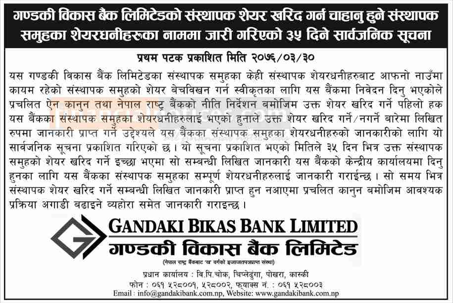 Published by Gandaki Bikas Bank Abhiyan Newspaper on 2076-3-30