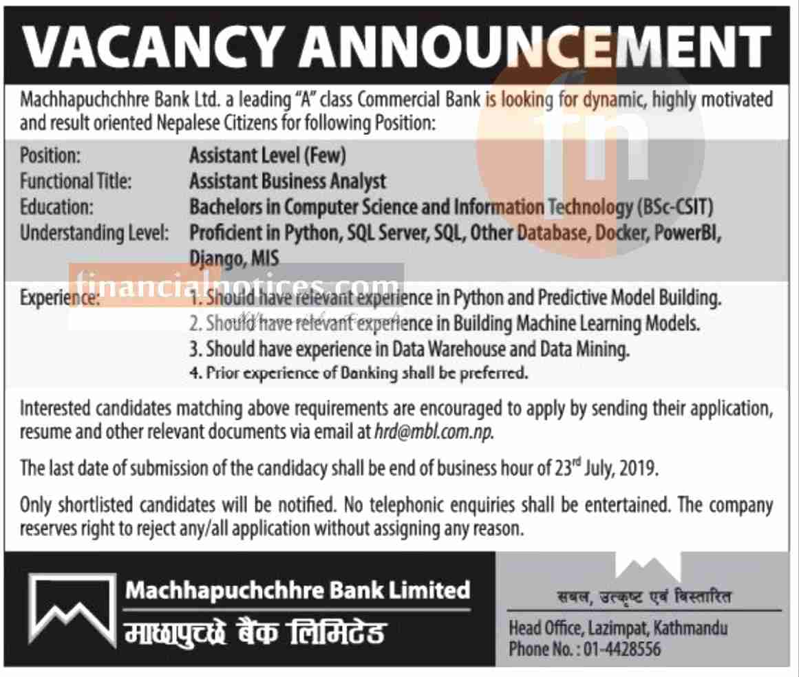 Published by Machhapuchhre Bank Official Page on 2076-4-01