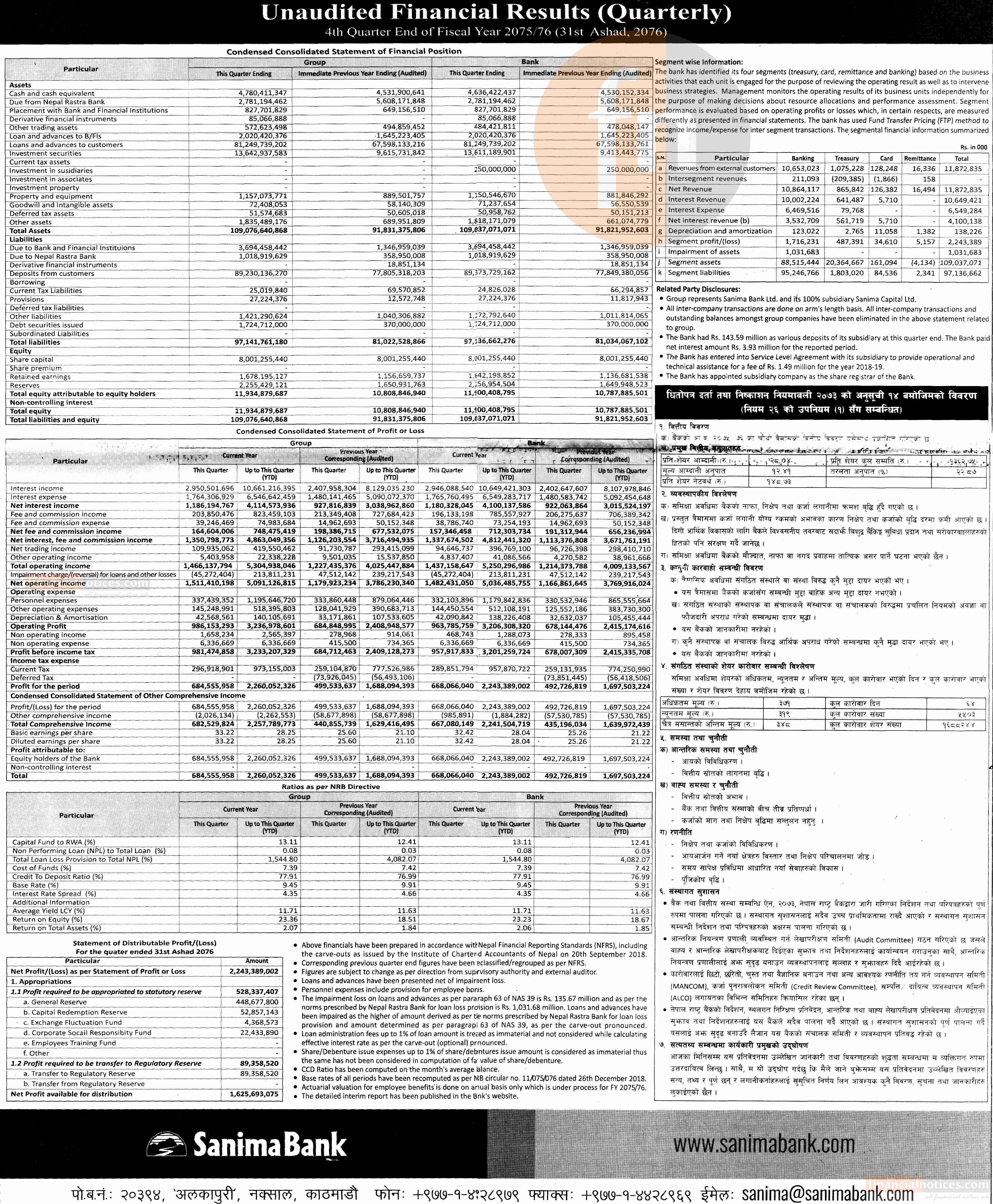 Published by Sanima Bank Limited Karobar Daily on 2076-4-12