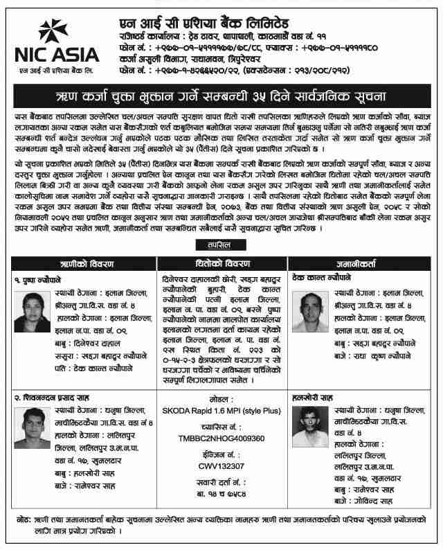 Published by NIC Asia Bank Nagarik News Paper on 2074-5-30