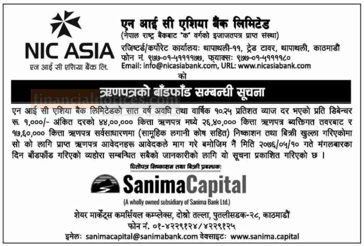 ऋणपत्र बाँडफाँड सम्बन्धी सूचना