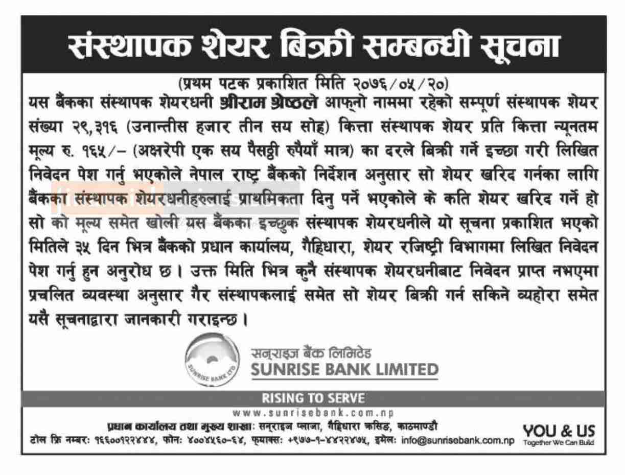 Published by Sunrise Bank Limited Abhiyan Newspaper on 2076-5-20
