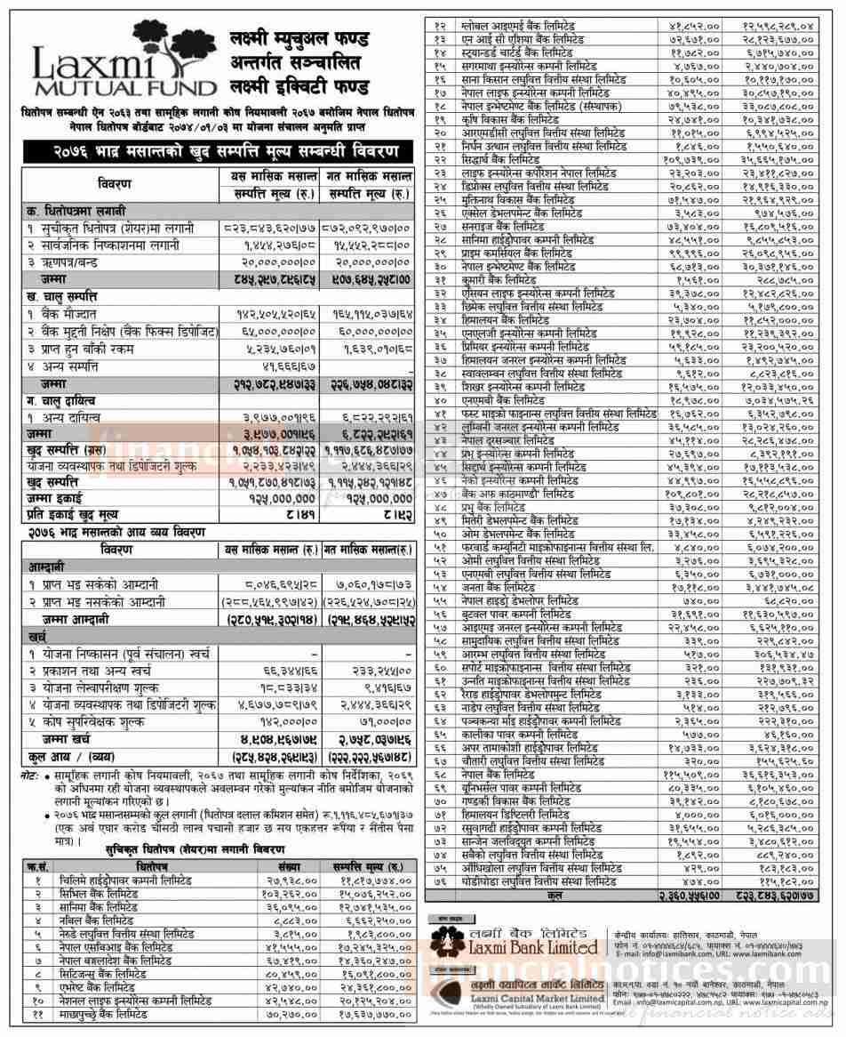 “Laxmi Equity Fund” Net Asset Value
