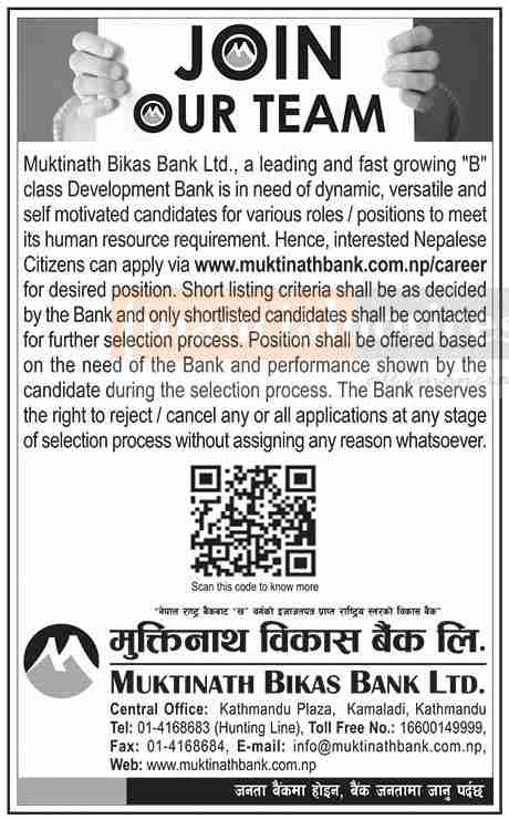 मुक्तिनाथ विकास बैंकमा ठूलो संख्यामा जागिर खुल्यो