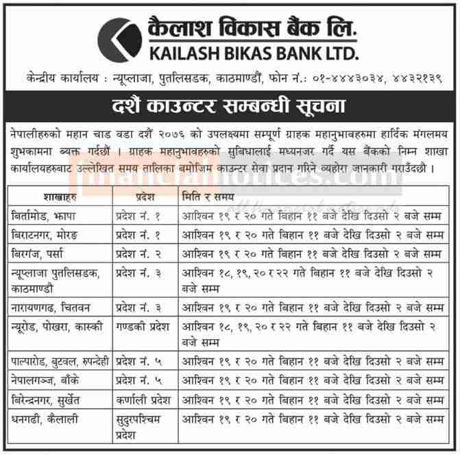 दशैं काउन्टर सम्बन्धी सूचना