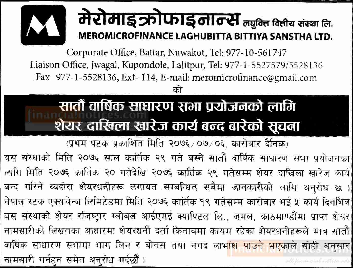 Published by Mero Microfinance karobardaily on 2076-7-06