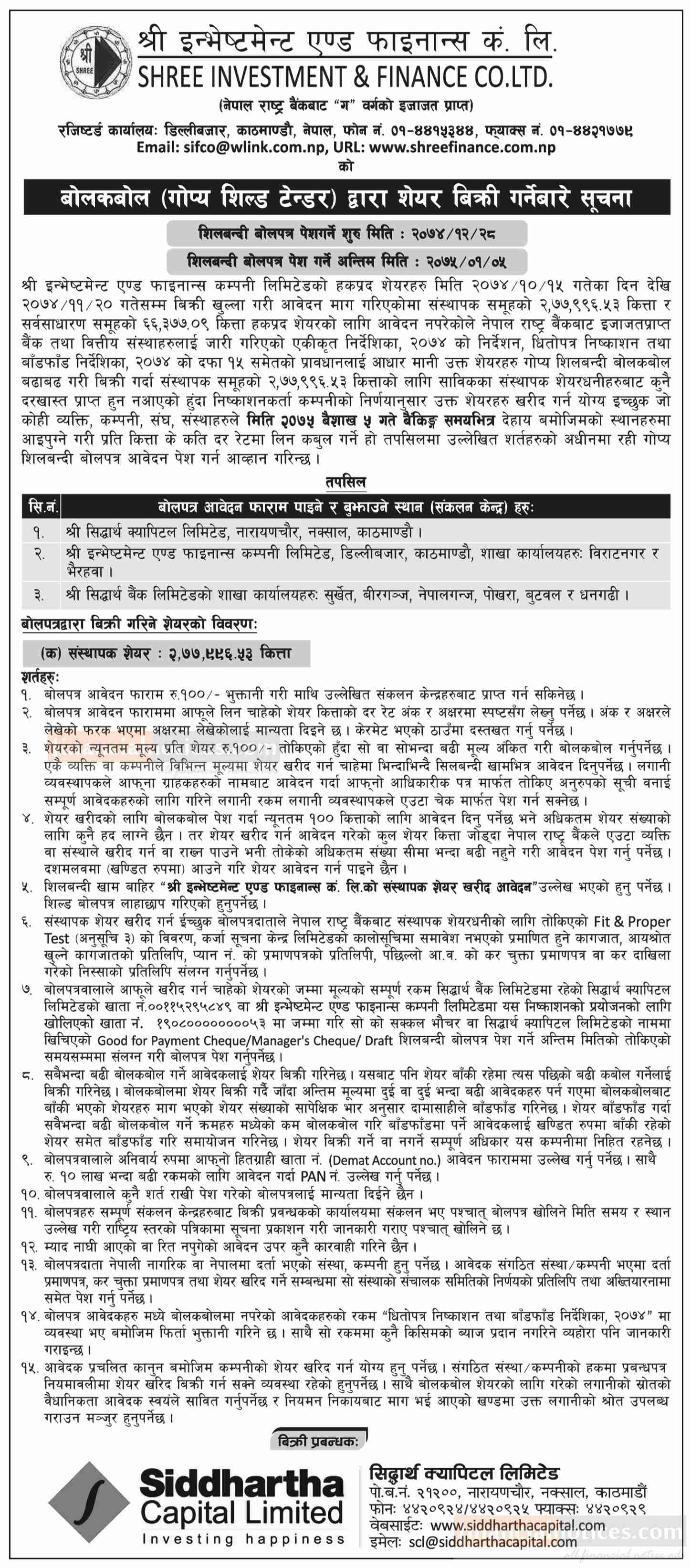 शिलबन्दी बोलपत्र मार्फत शेयर विक्रिको सूचना